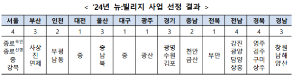 [국토부] 「뉴:빌리지」 사업 본격 착수, 첫 선도사업 32곳 선정 최고관리자 0 470 2025.01.07 14:31 https://blog.naver.com/mltmkr/223702777519 + 239 2025.01.07 14:31 241224조간_뉴빌리지_사업_본격_착수__첫_선도사업_32곳_선정도시활력지원과.pdf (1.1M) + 4 - 3월 발표 이후, 가이드라인 마련, 지자체 공모를 거쳐 선도사업 선정 - 노후 저층 주거지에 아파트 수준의 기반·편의시설과 주택정비 패키지 지원 □ 국토교통부(장관 박상우)는 국무총리 소속 도시재생특별위원회의 심의를 거쳐 전국 32곳을 뉴:빌리지 선도사업 지역으로 선정했다.
