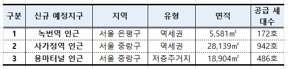 □ 국토교통부(장관 원희룡)는 12월 8일(금) 서울 녹번역, 사가정역, 용마터널 등 총 3곳 1.6천호를 도심 공공주택 복합지구로 신규 지정*한다.