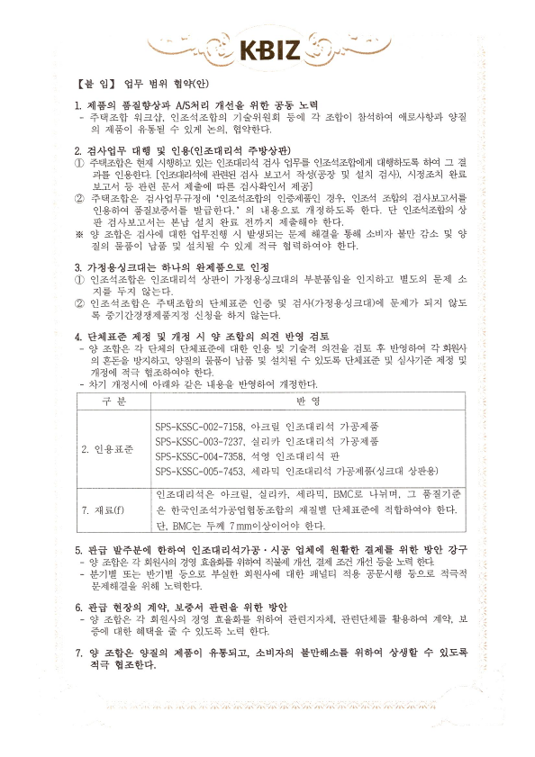 (2) 주방상판 검사권 이관(단체표준인증서 유무, 설치, 마감 등 검사)